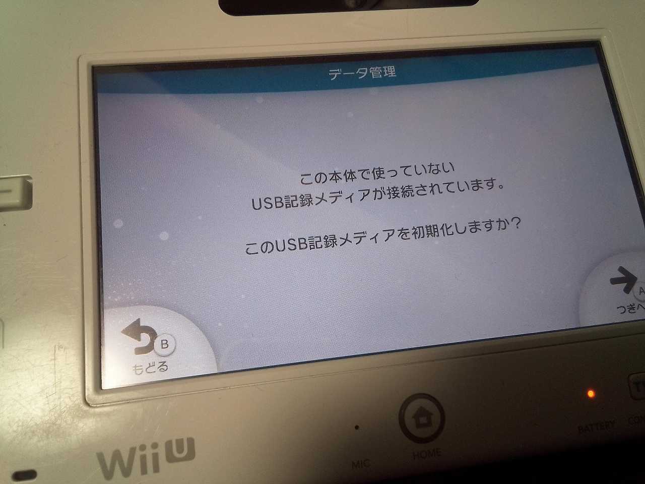 ・・・認識しない。認識しないのである!!!参考にしたブログによると、外部保存領域が新たに認識された場合はまず初期化する旨の文章が表示されるらしいのだが…一向に認識されないのである!